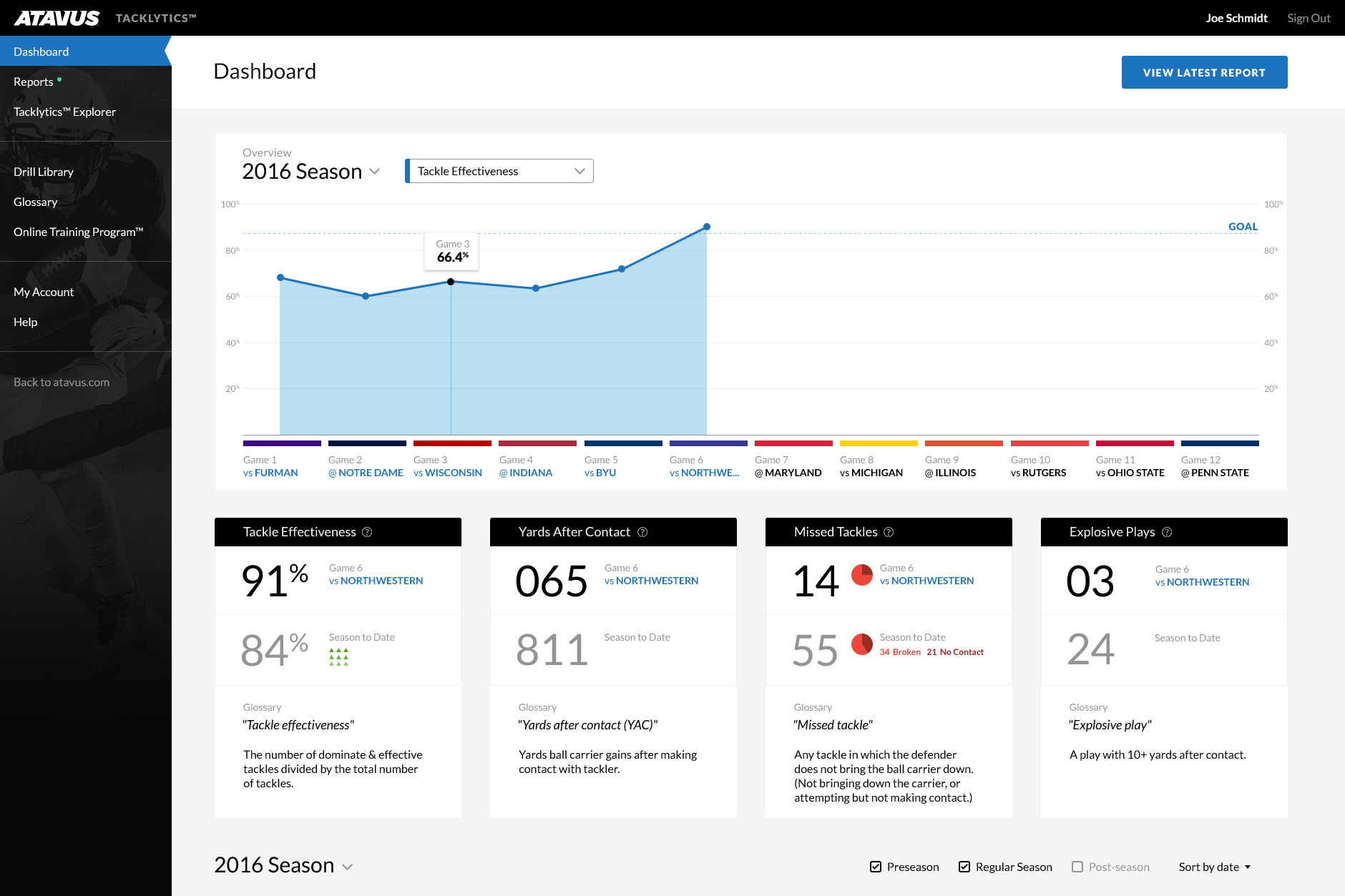 Create a web-based dashboard for NFL and NCAA coaches to view weekly tackling data.